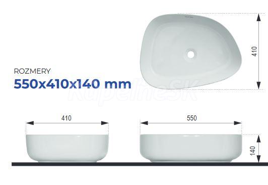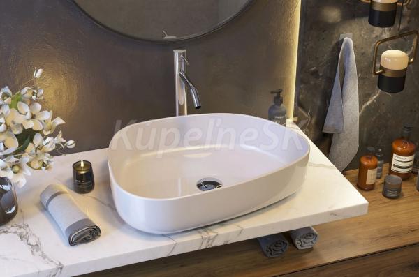 Atypické keramické umývadlo bez otvoru pre batériu, bez prepadu.