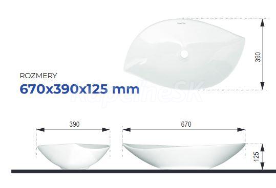 Atypické keramické umývadlo bez otvoru pre batériu, bez prepadu.