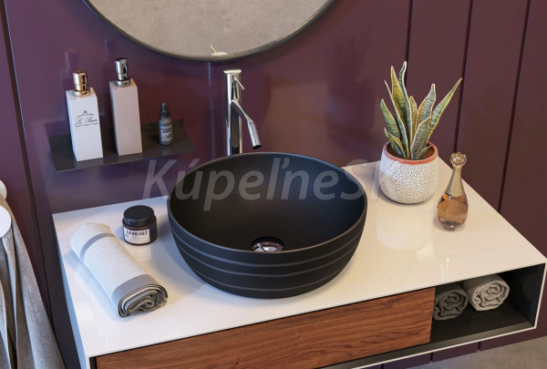 Ceramica Latina Zara 4 kruhové keramické umývadlo 41x41x14 cm,Čierna matná/bledošedá