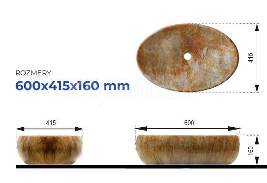 Ceramica Latina Simi-M Oválne keramické umývadlo 60x41,5x16 cm,Oranžovo-hnedý mramor