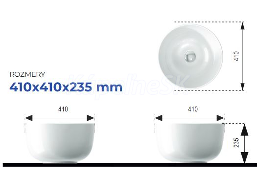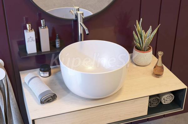 Kruhové keramické umývadlo bez otvoru pre batériu.