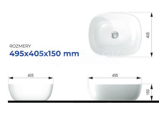 Ceramica Latina Tropea obdĺžnikové keramické umývadlo na dosku 49,5x40,5x15 cm,Biele