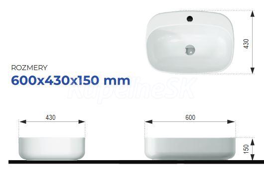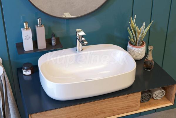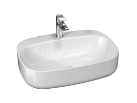 Obdĺžnikové keramické umývadlo so zaoblenými rohmi s otvorom pre batériu, bez prepadu.