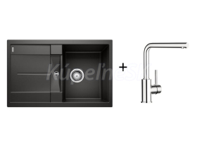 >>  KUCHYNE - Kuchynský tovar  >>  Kuchynské drezy  >>  AKCIOVÉ SETY (drez+batéria)  >>  Blanco SET 09-A 24 drez silgranit METRA 45 S 78x50 cm Čierna+batéria Mila Chróm