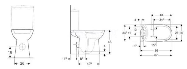 Geberit Selnova Comfort WC kombi misa 66x36cm,hlboké splach.,vodorovný odtok,zvýšená,Biela