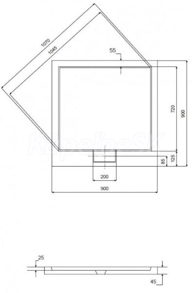 Besco Axim štvorcová akrylátová sprchová vanička 90x90x4,5 cm+sifón+krytka sif,Stone Effec