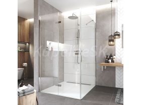 Hliníkové profily vo farbe chróm, sklo Číre, hrúbka skla 6 mm, obdĺžnik, 800 (dvere) x 800 (pevný diel), výška 2000 mm.
