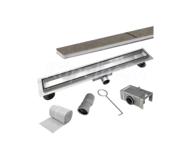 Celonerezové odtokové žľaby tejto rady predstavujú nové, moderné riešenie sprchových kútov a kúpeľní. V sprchových kútoch nahrádzajú vaničky a dotvárajú estetický ráz kúpeľne. Odtokový žľab TILE je dodávaný vrátane roštu. Rošt je možné použiť ako variantu, kedy je vidieť jednoliatá nerezová plocha, alebo je možné do roštu nalepiť priamo dlažbu. Obe varianty pôsobia veľmi jednoducho a čisto, pričom druhá varianta urobí zo žľabu nenápadný doplnok sprchovacieho kúta, ktorý skvele splynie s ostatnou dlažbou. - celonerezové telo žľabu - nerezová vnútorná vyťahovacia časť sifónu - výškovo nastaviteľné nožičky - materiál tela: nerezová oceľ (AISI 304) - materiál sifónu: nerezová oceľ (AISI 304) Nerezové sitko a zápachová uzávera.