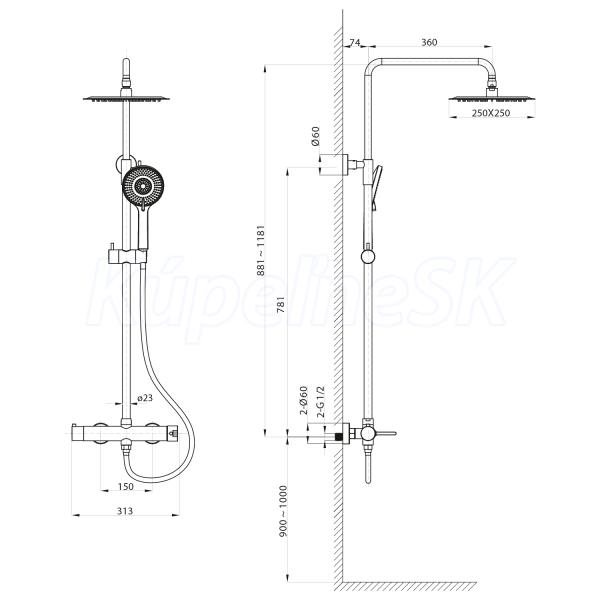 >> Batérie vodovodné >> Sprchové MASÁŽNE PANELY a STĹPY >> Sapho ICONIC sprchový stĺp s pákovou batériou, chróm