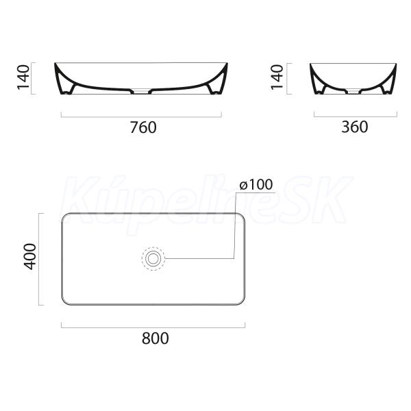 >> Umývadlá >> Umývadlá na dosku >> GSI NUBES obdĺžnikové keramické umývadlo na dosku 80x40cm, creta mat