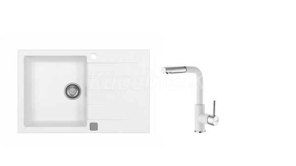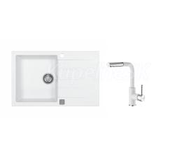 Alveus CADIT 20 SET kuchynský granit. drez so sifónom 79x50 + batéria SIROS - White/Chróm