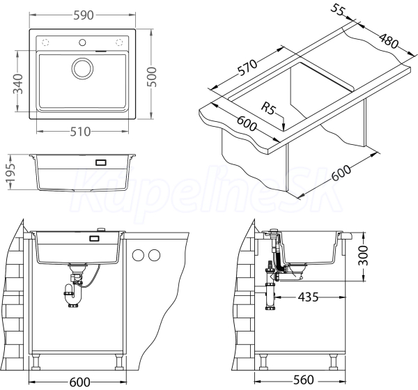 Alveus SET ALVEUS ATROX 30/55 + BATERIE SIROS 55 Vestavěný dřez, univerzál.
