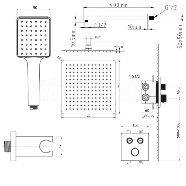 Sapho SMART SELECT podomietková termostatická sprchová súprava, 2 výstupy, vystúpenie, chr