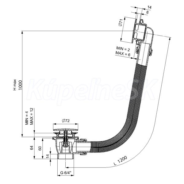 Polysan vaňová súprava bez napúšťania click-clack, dĺžka 1200 mm, zátka 72 mm, Čierna mat