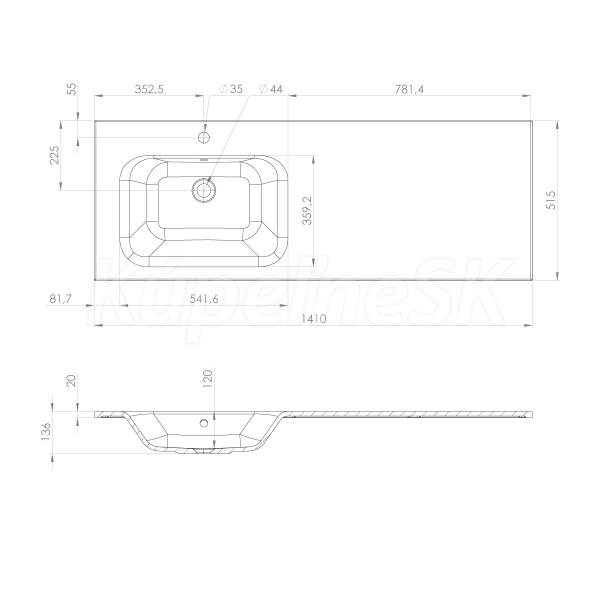 ZnačkaSAPHO SériaLOREA Rozmer141x46x51,5 cm Šírka1410. mm Výška460. mm Hĺbka515. mm Farba