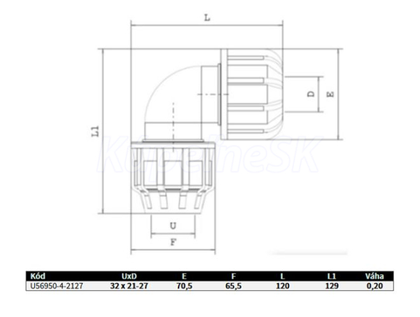 PA Universal koleno 90° 32x21-27, UNIxPE plastové pre PE rúry