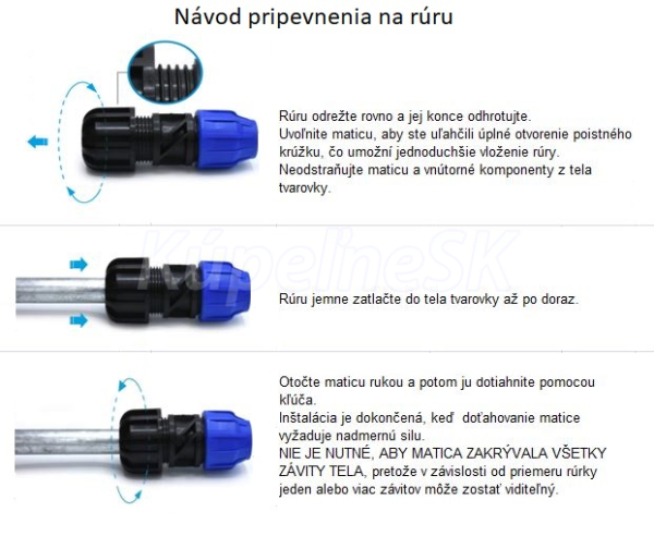 Zverný krúžok s kovovými vložkami na UNI strane zabezpečuje efektívne uchytenie akejkoľvek rúry a špeciálny tvar tesnenia zabezpečuje 100% -tnú vodotesnosť spojenia.