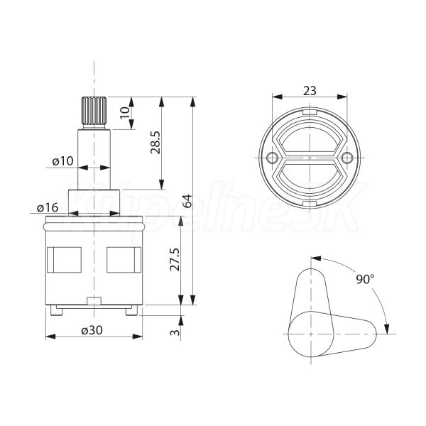 >> Batérie vodovodné >> Náhradné diely-Kartuše-Výtoky-Esíčka >> Prepínače pre vodovodné batérie >> Sapho Prepínač, 2 výstupy NDIV-39 NDIV-39