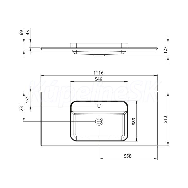 Sapho BRAHEA umývadlo 111,6x51,5cm, Rockstone, biela matná