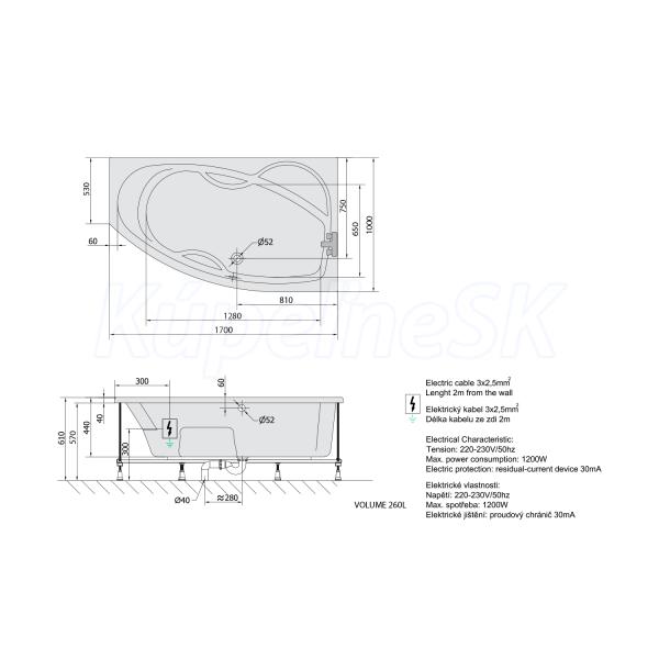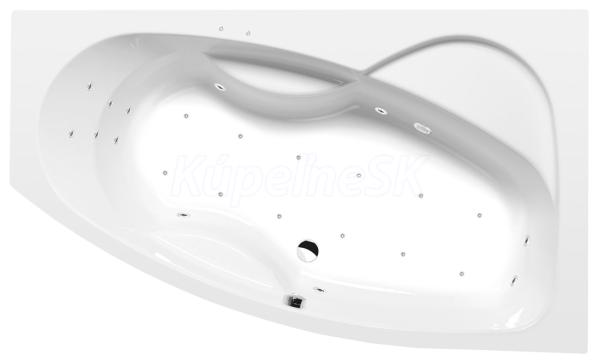 Polysan MAMBA R hydromasážna vaňa, 170x100x44cm, Attraction Hydro-Air, Biela,krytka Chróm