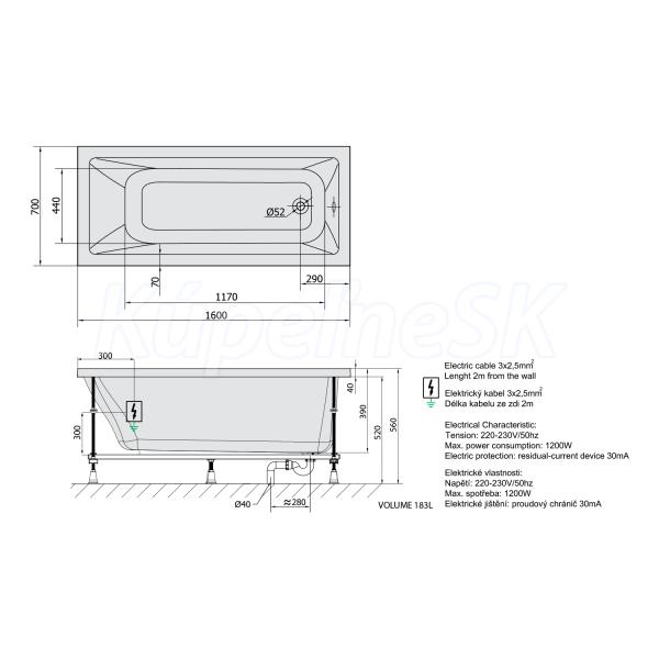 >>  Hydromasážne vane-boxy-panely  >>  Hydromasážne vane - systémy  >>  Polysan NOEMI hydromasážna vaňa, 160x70x39cm, Attraction Hydro,Biela,krytka Chróm