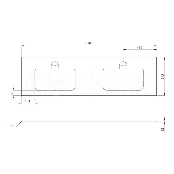 Sapho BRAHEA doska Rockstone s 2 otvormi 181x51,5cm (90+90cm), biela matná