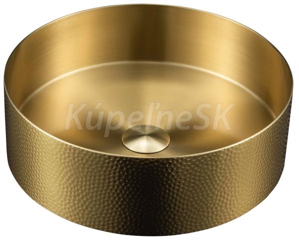 Sapho AURUM nerezové umývadlo na dosku, priemer 38cm, vrátane odtoku, tepané, zlato mat
