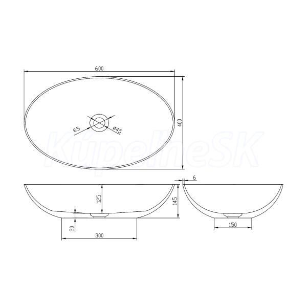 Polysan BANERA OVAL umývadlo na dosku, liaty mramor, 60x40cm, biela/hnedá mat