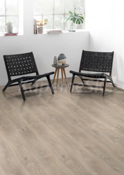 Dub Belfort strieborný v svetlej béžovej farbe zaujme elegantnou dubovou kresbou dreva. Tento moderný dekor pôsobí v interiéri príjemným a svetlým dojmom. Podlahové dosky vo formáte Classic zvýraznia celkový dojem z priestoru. Podlaha je bez V- drážky, čo znamená, že jednotlivé lamely do seba perfektne zapadnú, spoje sú neviditeľné a podlaha pôsobí celistvo a jednotne.