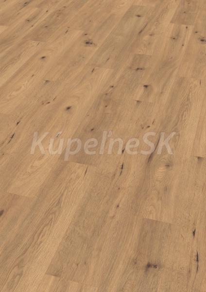 Dub Divoký prírodný zaujme mimoriadne prírodným vzhľadom. Typická dubová kresba dreva je obohatená o tmavé hrče, čím je podčiarknutá autenticita dekoru. V interiéri pôsobi veľmi moderne a nadčasovo. Podlahové dosky vo formáte Classic zvýraznia celkový dojem z priestoru. 4- stranné priznané drážky po celom obvode zvýrazňujú vzhľad jednotlivých podlahových dosiek.