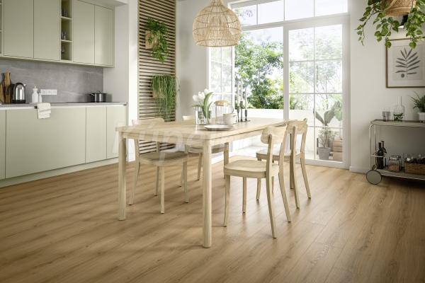 Dub Padua medový je jemný a zároveň živý dekor s charakteristickou kresbou dreva. Teplá farba podlahy vnáša do miestnosti pocit prírody. Podlahové dosky vo formáte Classic zvýraznia celkový dojem z priestoru. 4- stranné priznané drážky po celom obvode zvýrazňujú vzhľad jednotlivých podlahových dosiek.
