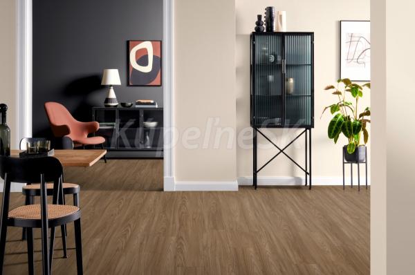Akácia Sheffield hnedá je nadčasový dekor, ktorý pôsobí v interiéri ľahko a moderne. Dobre sa kombinuje s bielou, neutrálnymi farbami, akcentovými farbami alebo dokonca čiernou. 4- stranné priznané drážky po celom obvode zvýrazňujú vzhľad jednotlivých podlahových dosiek.