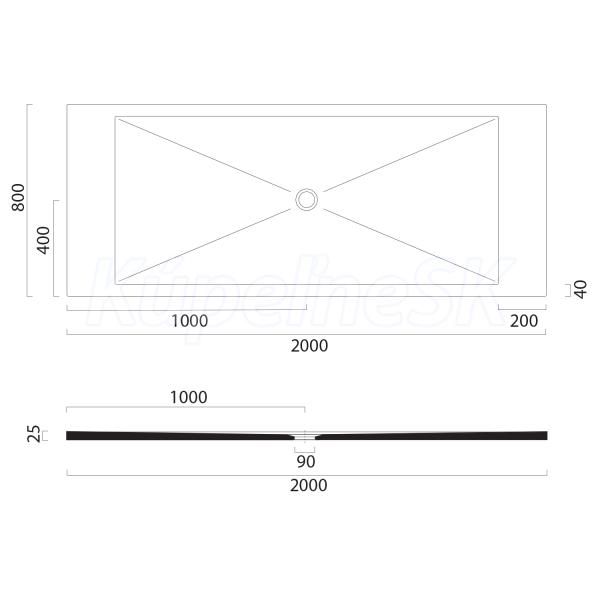 GSI Keramická sprchová vanička, obdĺžnik 200x80x2cm, agave mat