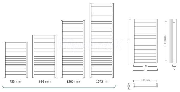 • 500 × 1 573 mm, výkon 581 W, (vykurovacia tyč 600 W)