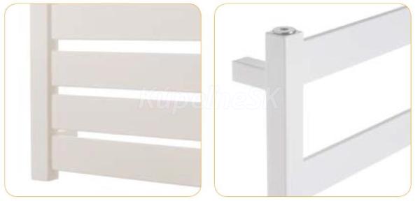 Radiátory sú dodávané BEZ vykurovacej tyče, za rozmerom je iba uvedený vhodný výkon tyče pre patričný rozmer. Štandardná farba C35 white silk (biela lesklá).