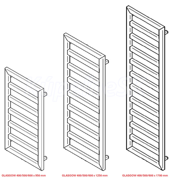 Dostupné rozmery a typy pripojenia radiátora GLASGOW :