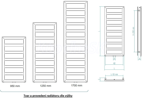 Radiátory sú dodávané BEZ vykurovacej tyče, za rozmerom je iba uvedený vhodný výkon tyče pre patričný rozmer.