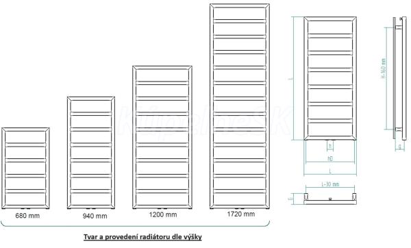 Radiátory sú dodávané BEZ vykurovacej tyče, za rozmerom je iba uvedený vhodný výkon tyče pre patričný rozmer.