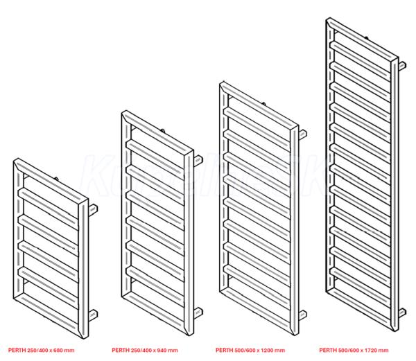 Dostupné rozmery a typy pripojenia radiátora PERTH: