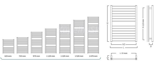 - 530 × 1529 mm, výkon 669 W, (vykurovacia tyč 600 W)