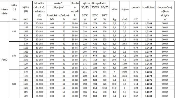 Dostupné rozmery radiátora PIKO do kúpeľne: