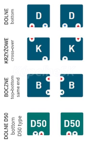 - pripojenie radiátora na rozstup alebo spodný D50