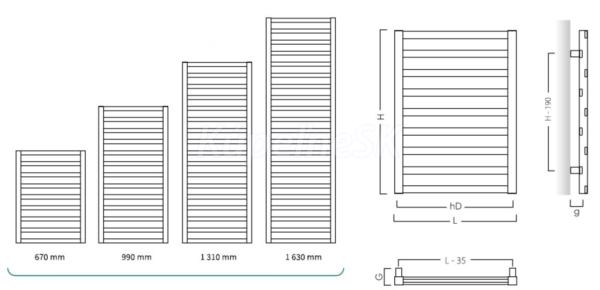 Dostupné rozmery radiátora POPPY kúpeľne: