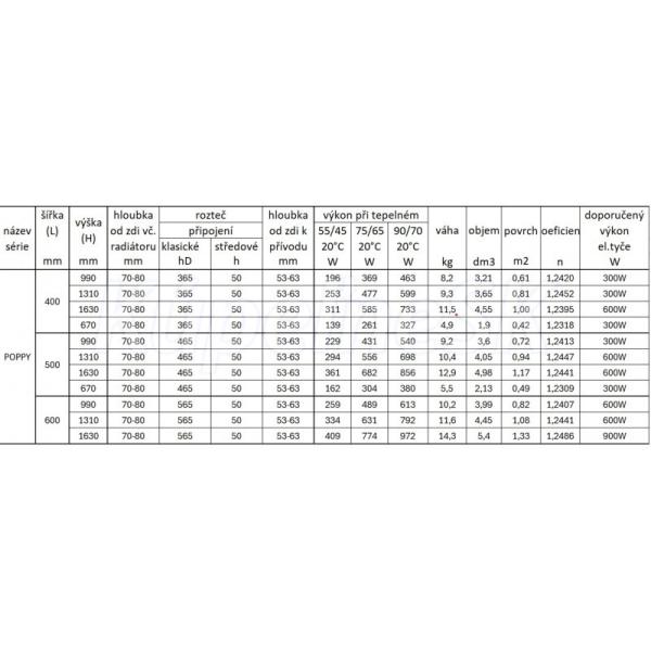 Dostupné rozmery radiátora POPPY kúpeľne: