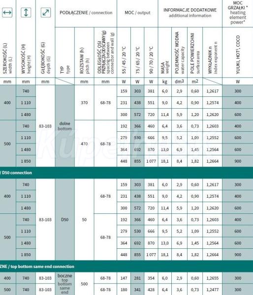 - 500 × 740 mm, výkon 377 W (vykurovacia tyč 300 W) - BOČNÉ PRIPOJENIE