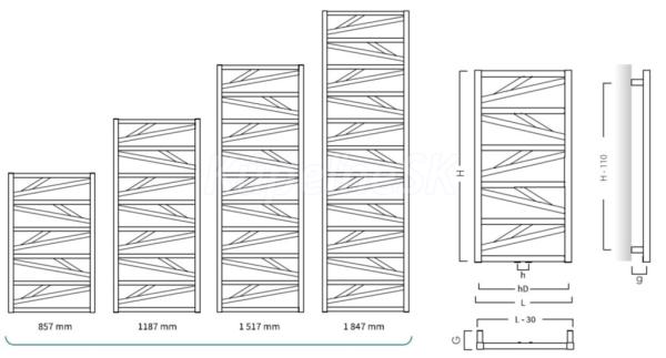 - 430 × 1187 mm, výkon 466 W, (vykurovacia tyč 400 W)