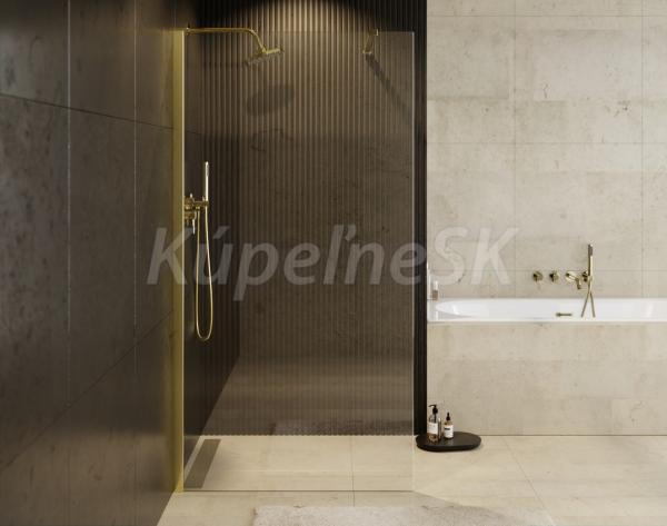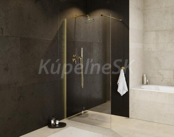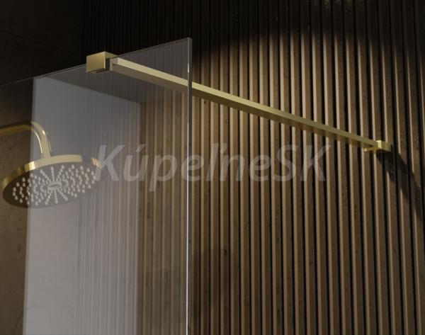 Exkluzívna Walk-in sprchová zástena ECO-N GOLD (zlatá farba), dodávame v štyroch rozmeroch. Sprchovú zástenu tvorí iba čelná stena, ktorá je zaistená rozpernou tyčou s maximálnou dĺžkou roztiahnutia až 120 cm . Vďaka tejto konštrukcii ľahko vytvoríte bezbariérový sprchovací kút . Možná inštalácia ako na vaničku, tak aj priamo na podlahu.