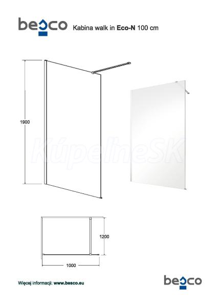 BESCO ECO-N GOLD Walk In sprchový kút 100x195 cm,sklo Číre,1x vzpera