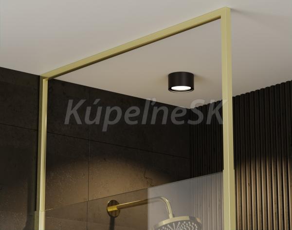Exkluzívny walk-in sprchovací kút ICON GOLD. Bezdverový sprchovací kút tvorí iba pevná stena, ktorá je zaistená teleskopickým rámom s maximálnou výškou 280 cm . Ľahko tak vytvoríte sprchovací kút presne pre váš priestor. Vďaka tejto konštrukcii ľahko vytvoríte bezbariérový sprchovací kút . Možná inštalácia na vaničku alebo priamo na podlahu.