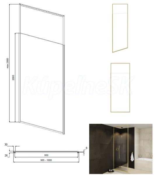 BESCO ICON GOLD Walk-In sprchový kút 100x200 cm, sklo Číre, teleskopický rám do 280 cm
